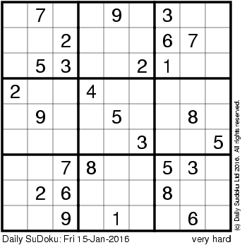 The Daily SuDoku: Fri 15-Jan-2016