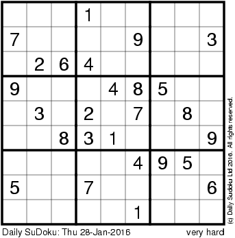 The Daily SuDoku: Thu 28-Jan-2016