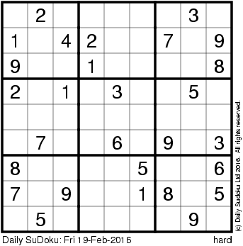 The Daily SuDoku: Fri 19-Feb-2016