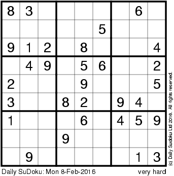 The Daily SuDoku: Mon 8-Feb-2016