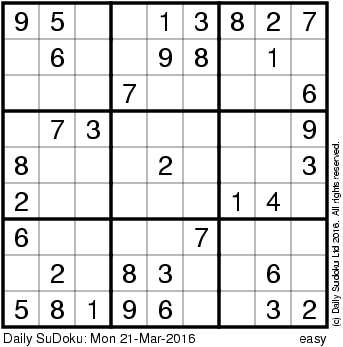 The Daily SuDoku: Mon 21-Mar-2016