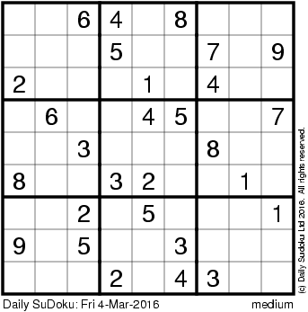 The Daily SuDoku: Fri 4-Mar-2016