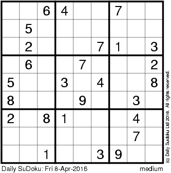 The Daily SuDoku: Fri 8-Apr-2016
