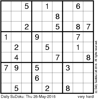 The Daily SuDoku: Thu 26-May-2016