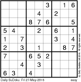 The Daily SuDoku: Fri 27-May-2016