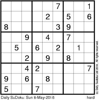 The Daily SuDoku: Sun 8-May-2016