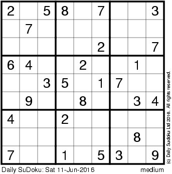 The Daily SuDoku: Sat 11-Jun-2016