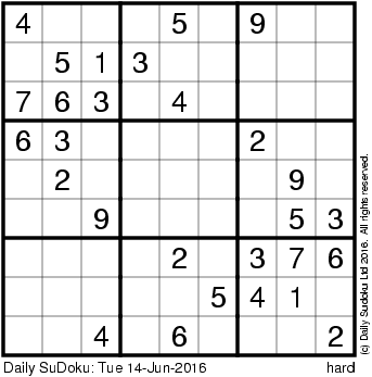 The Daily SuDoku: Tue 14-Jun-2016