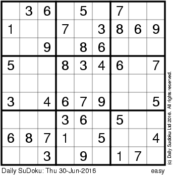 The Daily SuDoku: Thu 30-Jun-2016