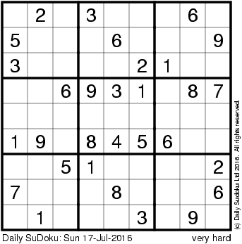 The Daily SuDoku: Sun 17-Jul-2016