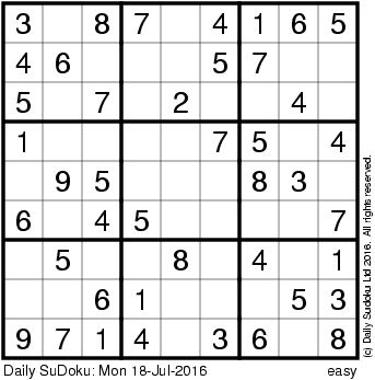 The Daily SuDoku: Mon 18-Jul-2016