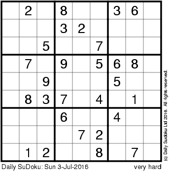 The Daily SuDoku: Sun 3-Jul-2016
