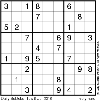 The Daily SuDoku: Tue 5-Jul-2016