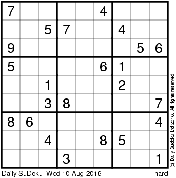 The Daily SuDoku: Wed 10-Aug-2016