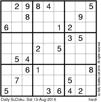 The Daily SuDoku: Sat 13-Aug-2016