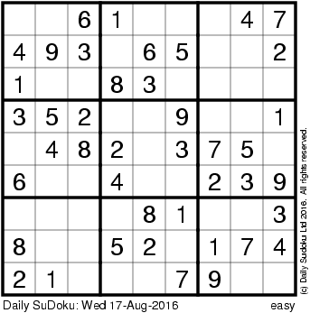 The Daily SuDoku: Wed 17-Aug-2016