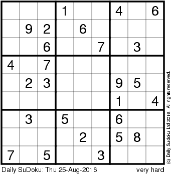 The Daily SuDoku: Thu 25-Aug-2016