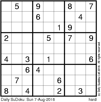 The Daily SuDoku: Sun 7-Aug-2016