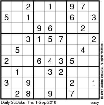 The Daily SuDoku: Thu 1-Sep-2016