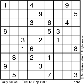 The Daily SuDoku: Tue 13-Sep-2016