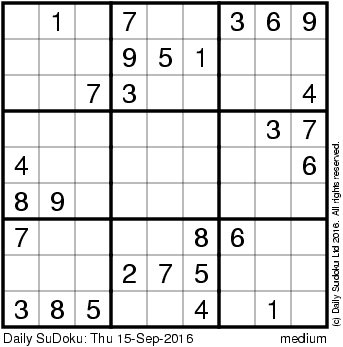 The Daily SuDoku: Thu 15-Sep-2016