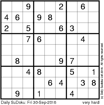 The Daily SuDoku: Fri 30-Sep-2016