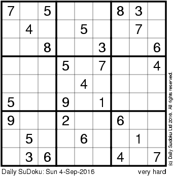 The Daily SuDoku: Sun 4-Sep-2016