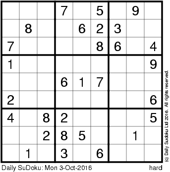 The Daily SuDoku: Mon 3-Oct-2016