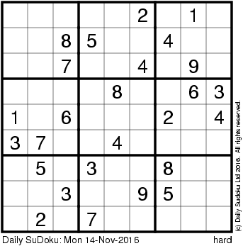 The Daily SuDoku: Mon 14-Nov-2016