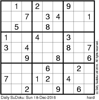 The Daily SuDoku: Sun 18-Dec-2016