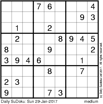 The Daily SuDoku: Sun 29-Jan-2017