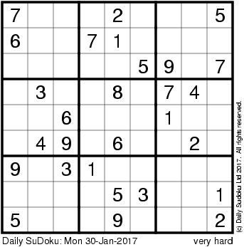 The Daily SuDoku: Mon 30-Jan-2017