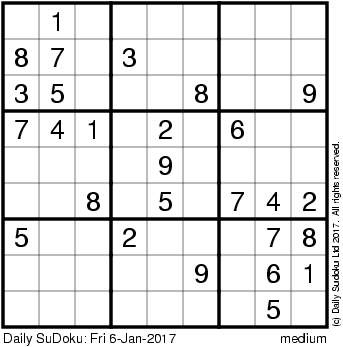 The Daily SuDoku: Fri 6-Jan-2017