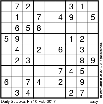 The Daily SuDoku: Fri 10-Feb-2017