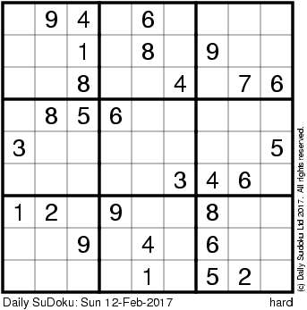 The Daily SuDoku: Sun 12-Feb-2017