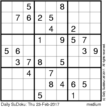 The Daily SuDoku: Thu 23-Feb-2017