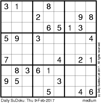 The Daily SuDoku: Thu 9-Feb-2017