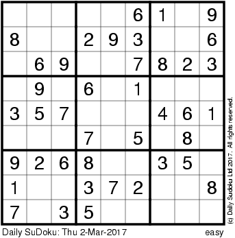 The Daily SuDoku: Thu 2-Mar-2017