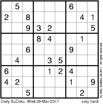 The Daily SuDoku: Wed 29-Mar-2017