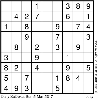 The Daily SuDoku: Sun 5-Mar-2017