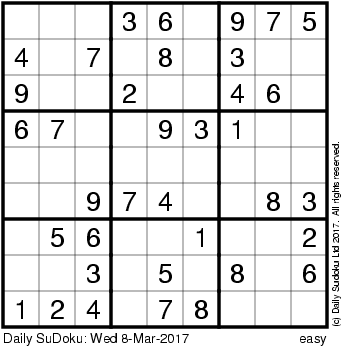 The Daily SuDoku: Wed 8-Mar-2017