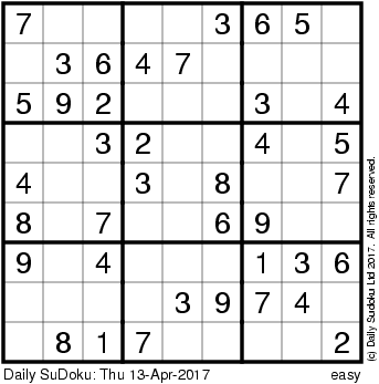 The Daily SuDoku: Thu 13-Apr-2017