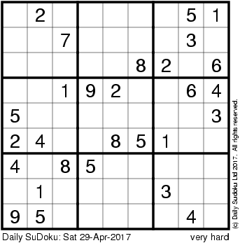 The Daily SuDoku: Sat 29-Apr-2017