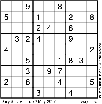 The Daily SuDoku: Tue 2-May-2017