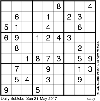 The Daily SuDoku: Sun 21-May-2017