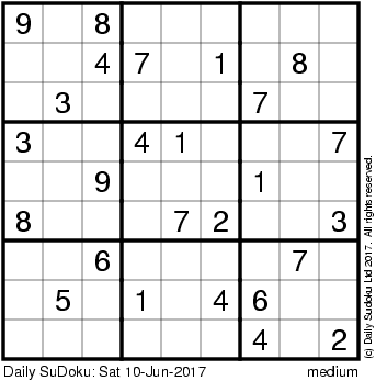 The Daily SuDoku: Sat 10-Jun-2017