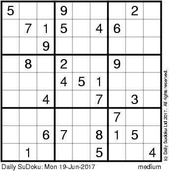 The Daily SuDoku: Mon 19-Jun-2017
