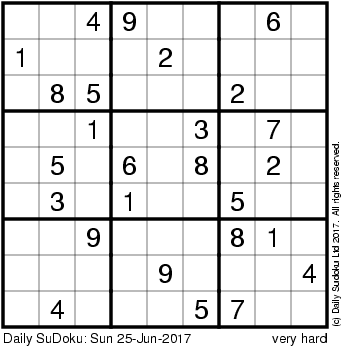 The Daily SuDoku: Sun 25-Jun-2017