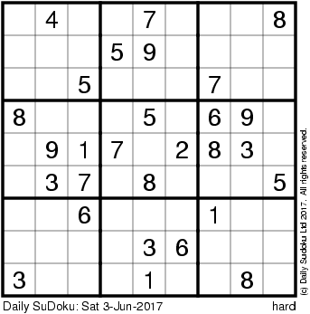 The Daily SuDoku: Sat 3-Jun-2017