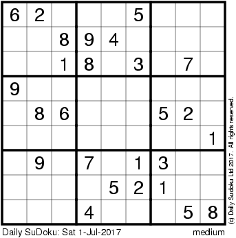 The Daily SuDoku: Sat 1-Jul-2017